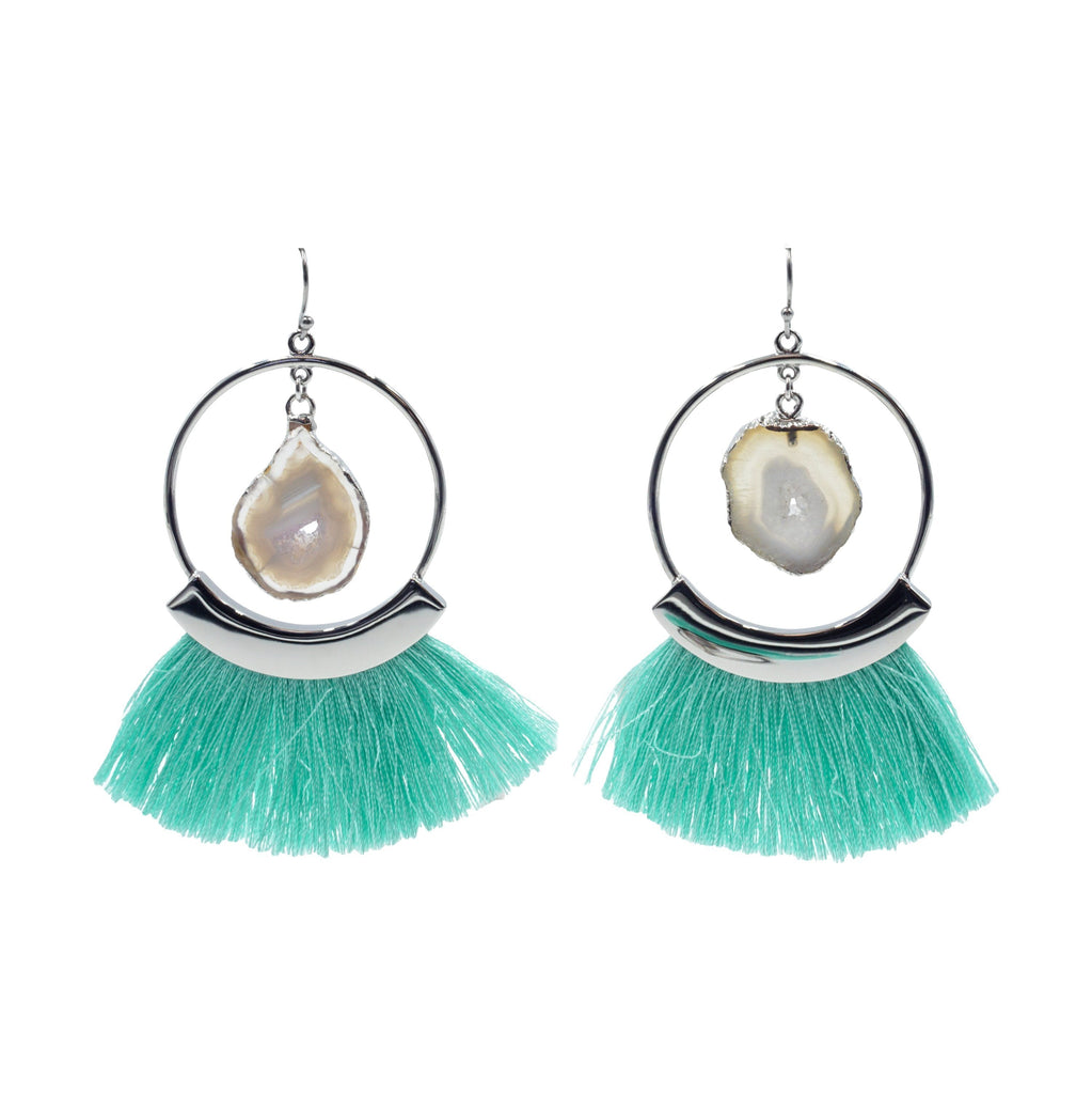 Agate Collection - Silver Mint Fringe Earrings
