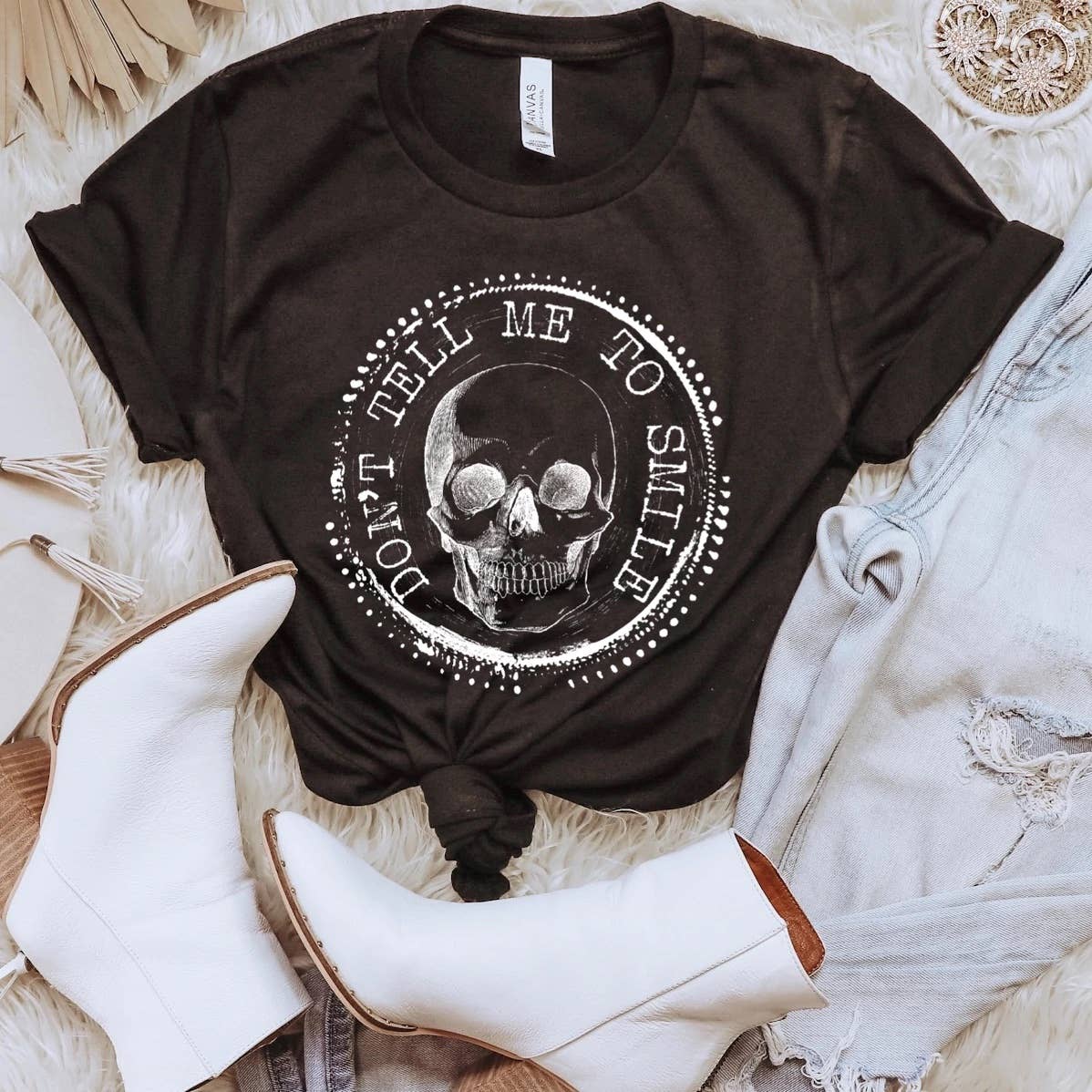 We are always told to smile, well maybe we don't want to! True to size relaxed fit, or size down for a more fitted look.
