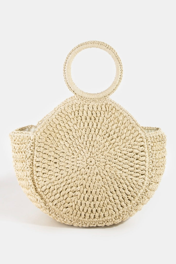 Fame Circle Handle Circle Straw Braided Hand Bag